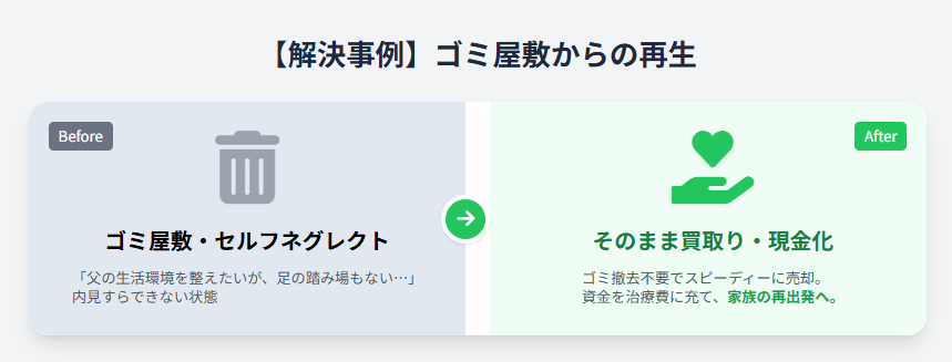 【お客様の事例】ゴミ屋敷状態だった実家を売却し、家族の再生へ