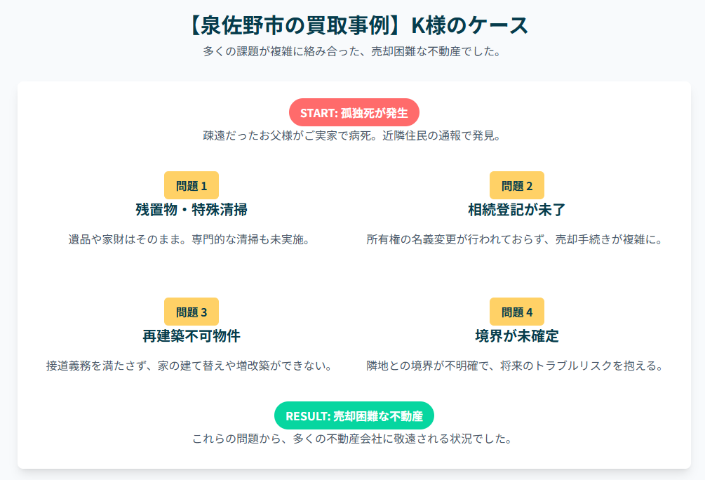 【泉佐野市買取実例】孤独死・再建築不可の空き家を「まるごと買取り」