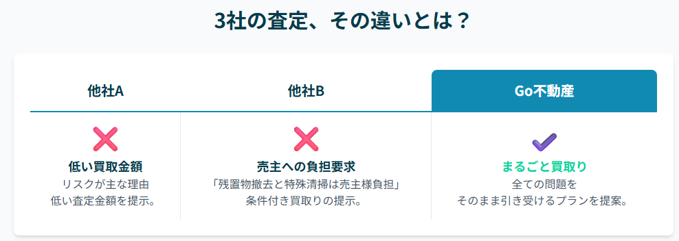 2社の見積もりと、Go不動産の「まるごと買取りプラン」