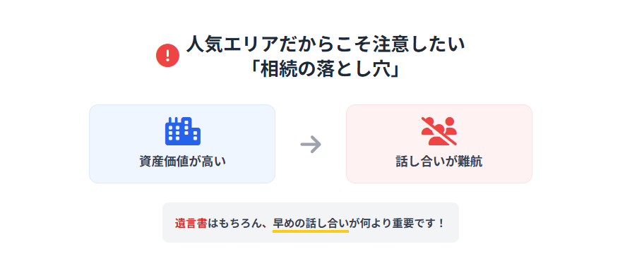不動産市場が活況であることは喜ばしい反面、資産価値が高いエリアだからこそ、ご実家の相続発生時には親族間での意見の対立や、思わぬトラブルに発展するケースも少なくありません。