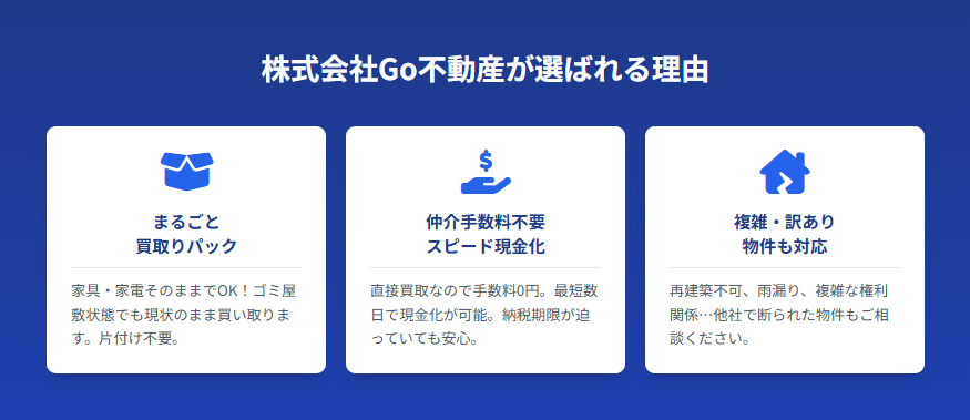 私たち株式会社Go不動産は、そうした複雑な事情を抱えた不動産の買取りを専門としています。