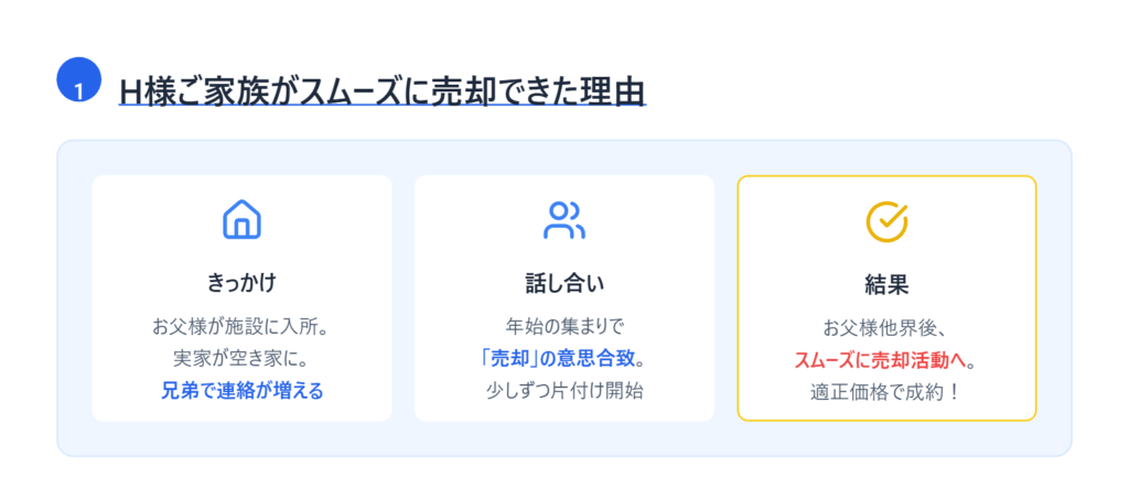 H様ご家族の事例から学ぶスムーズな売却活動