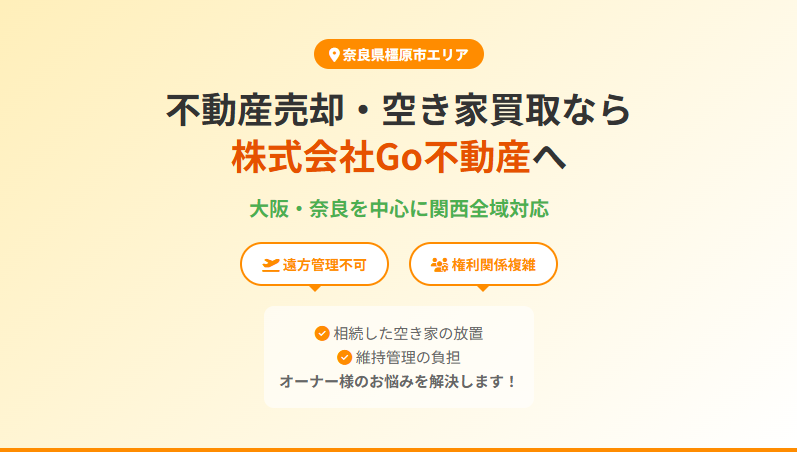 奈良県内で空き家や不動産の処分にお困りの方、相続登記の期限が迫り焦りを感じている方は、ぜひ株式会社Go不動産へご連絡ください。
