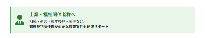 弁護士・司法書士・行政書士の先生方、福祉関係者様へ