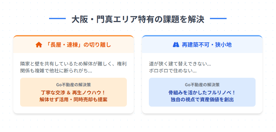 大阪府門真市をはじめ、北河内・北摂エリアで「相続した実家が売れない」「古い長屋の処分に困っている」とお悩みの方へ。