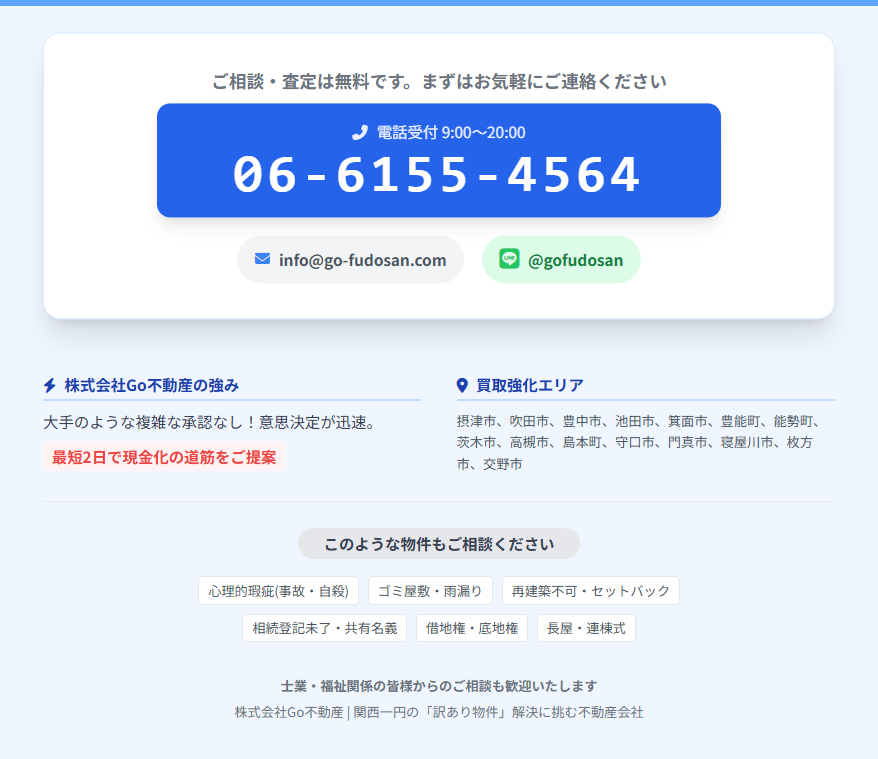 関西一円の「訳あり物件」解決に挑む不動産会社 ※査定は無料、秘密厳守で対応いたします。