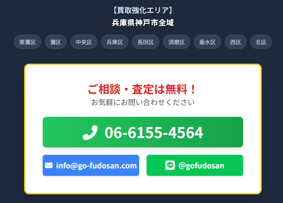 【買取り強化エリア】 兵庫県神戸市全域 東灘区、灘区、中央区、兵庫区、長田区、須磨区、垂水区、西区、北区
