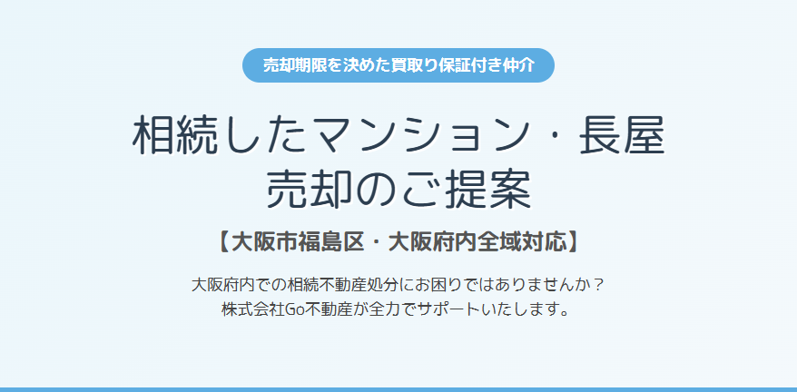 大阪市福島区で相続したマンションや長屋の売却ならお任せください。