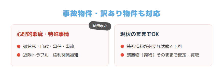 当社では、いわゆる事故物件の取り扱いにも豊富な実績があります。