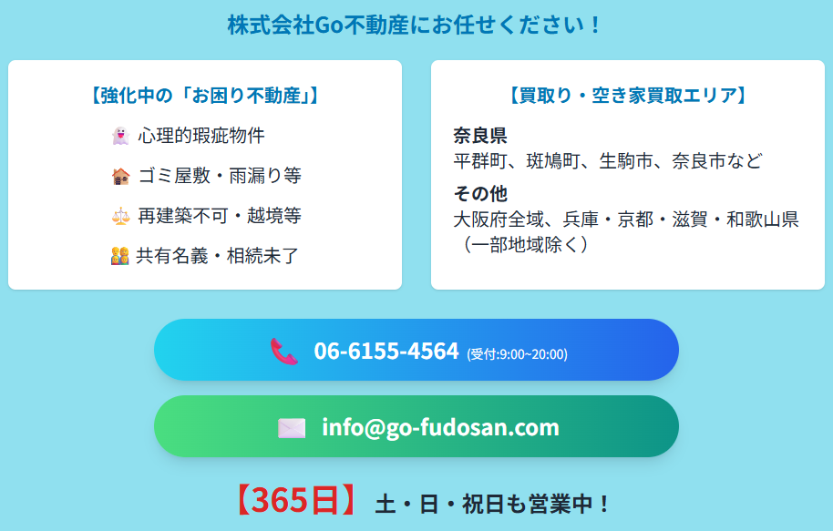 奈良県内の「訳あり物件」の売却はGo不動産へご相談ください