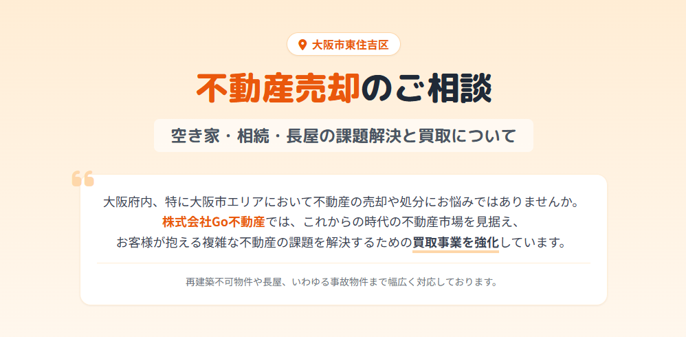 大阪府内、特に大阪市エリアにおいて不動産の売却や処分にお悩みではありませんか。