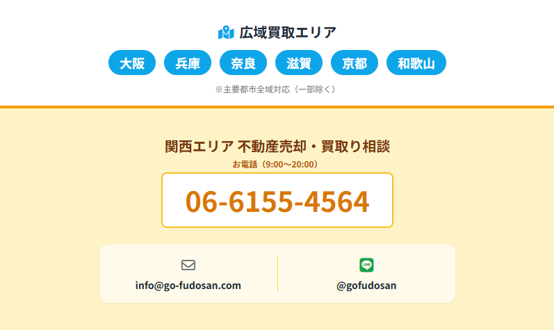 奈良県内をはじめ、関西エリアで不動産の売却や買取り先をお探しの方は、ぜひ株式会社Go不動産へお問い合わせください。