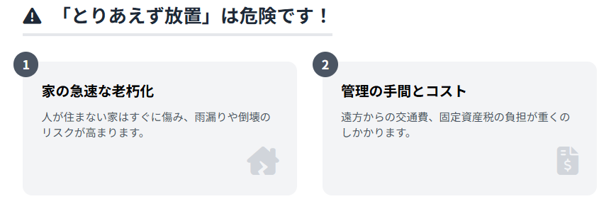 実家を相続したものの、すぐに売却や活用を決断できず、「とりあえずそのまま」にされているケースは非常に多く見受けられます。