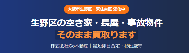 大阪市生野区、東成区、住吉区、東住吉区、平野区などのエリアで、不動産の処分にお困りの方は、まずは株式会社Go不動産へお問い合わせください。