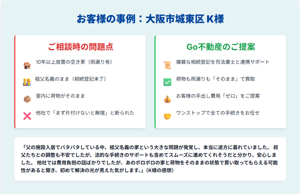 【大阪市城東区の不動産売却】相続登記未了の10年以上放置された空き家も「まるごと買取」