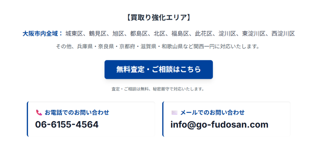 大阪市城東区をはじめ、上記強化エリアで「空き家」や「相続物件」の売却、「事故物件(孤独死・自殺)」の買取り、「ゴミ屋敷」状態の家の売却、「長屋」や「連棟」、「再建築不可」物件の売却など、あらゆる不動産のお悩みに対応いたします。