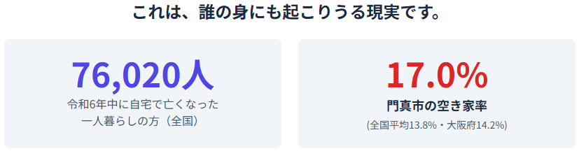 高齢化と単身世帯の増加は、誰にも看取られることなく自宅で亡くなる「孤独死」という社会問題と直結しています。