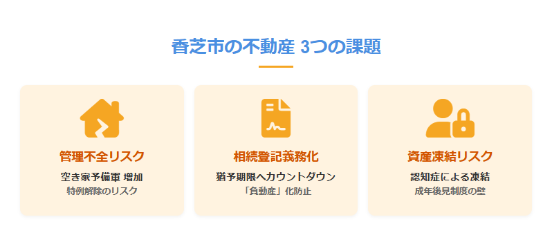 奈良県香芝市のような郊外型住宅地では、資産価値よりも維持管理コストが上回る「負動産」化するリスクもあり、権利関係が複雑になる前に、そして過料の対象となる前に、売却や現金化を行うことが次世代への負担を減らす鍵となります。