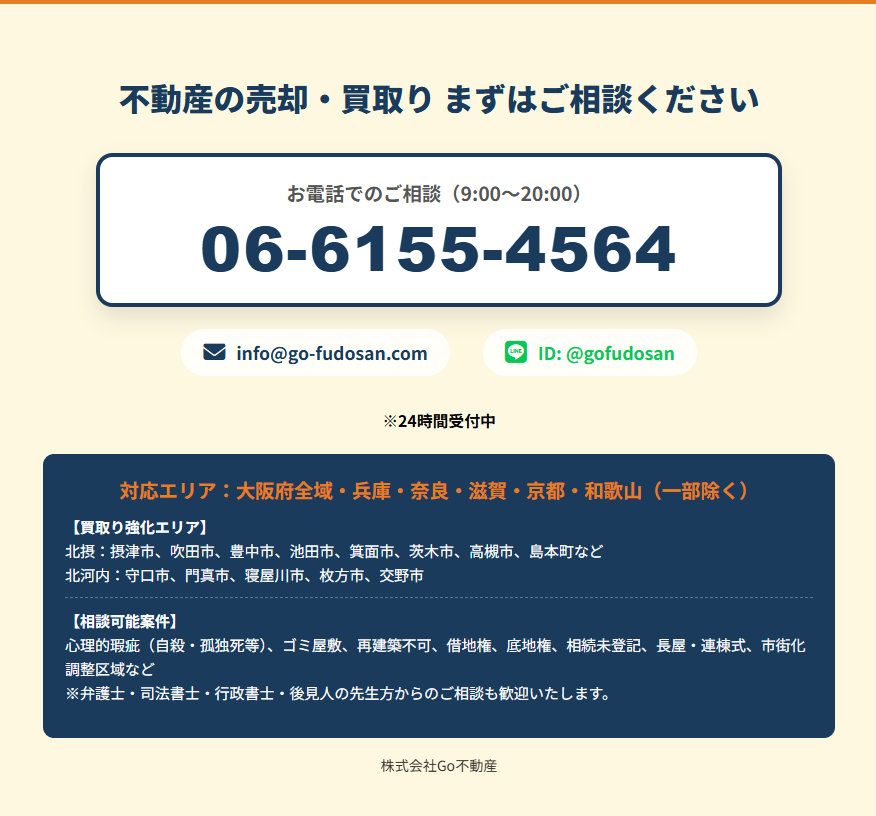 もちろん、これら以外の大阪府全域や近隣エリアのご相談も承っております。