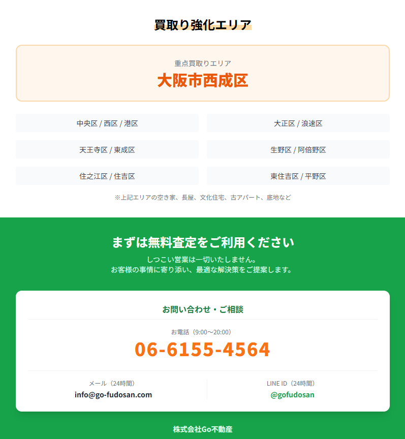 株式会社Go不動産では、大阪府全域で活動しておりますが、現在は特に以下のエリアでの不動産買取りを強化しております。