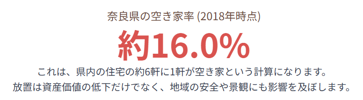 奈良県全体の空き家率は、2018年時点で14.1%と全国平均の13.6%を上回っており、増加傾向にあります。