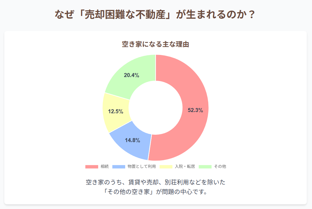 データが示す市場の厳しさに加え、個々の不動産が抱える特有の問題が、売却をさらに困難にします。