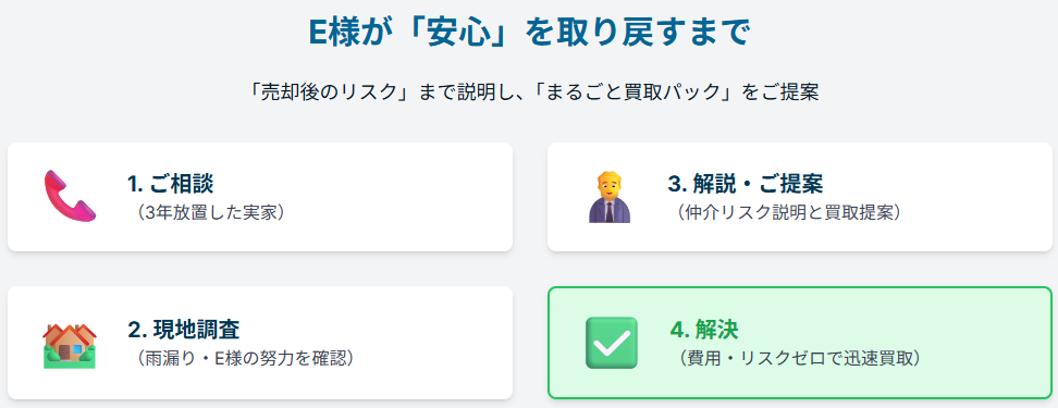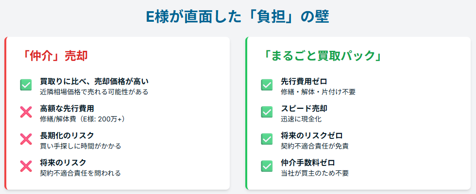 この「まるごと買取パック」なら、E様が直面した負担をすべて解消できます。