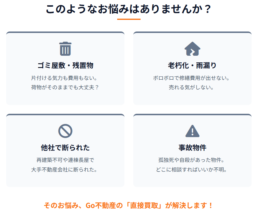しかし、そんな「ワケあり物件」こそ、Go不動産の得意分野です。