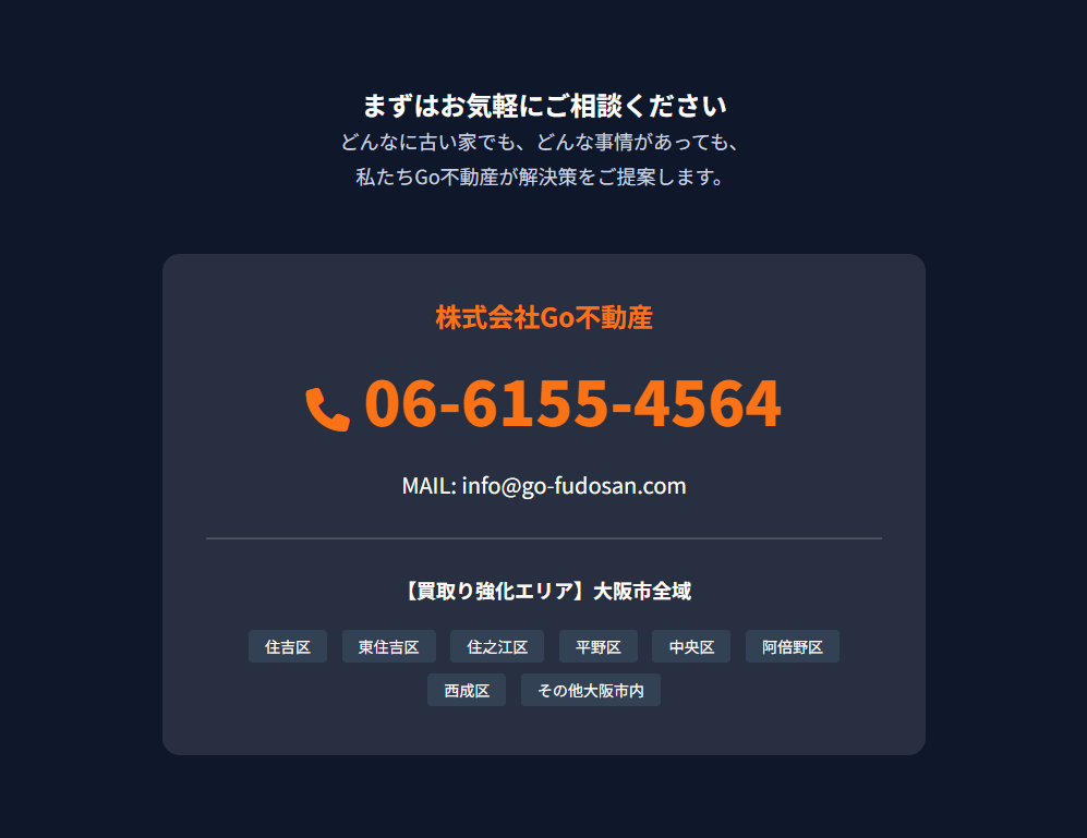 長年放置されたままの空き家、権利関係が複雑な相続物件、あるいは他社で断られてしまった長屋など、不動産の売却に関するお悩みは、ぜひ株式会社Go不動産にお任せください。