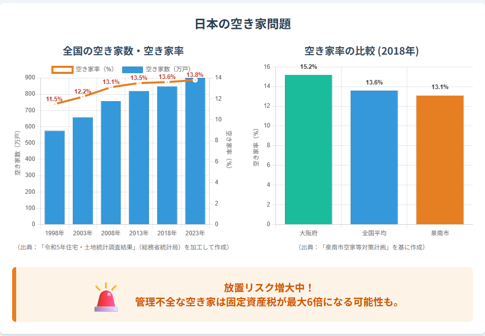 今回の泉南市の事例は無事に解決しましたが、日本全国で空き家問題は深刻さを増しています。