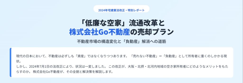 本ブログ記事では、大阪・兵庫・奈良などの関西エリア全域で活動し、特に北摂・北河内地域で不動産買取・再生事業を展開する株式会社Go不動産が、この法改正が所有者にもたらすメリットを解説します。