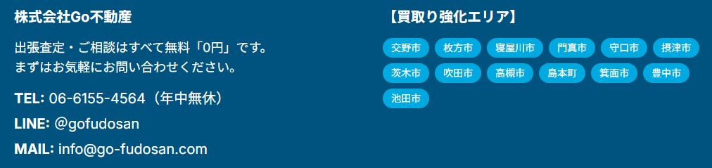私たちは、大阪府内での不動産売却に関する無料相談はもちろん、任意売却のご相談や、一般的に「訳あり物件」と呼ばれる不動産の買取り・売却サポートなど、あらゆる不動産のお悩みに対応する不動産の専門業者です。