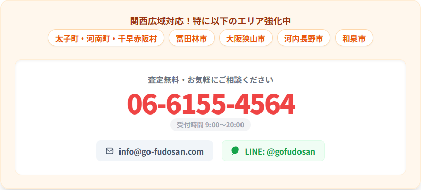 株式会社Go不動産では、大阪府下全域・兵庫県・奈良県など関西エリアの広範囲で物件をご相談いただけます。