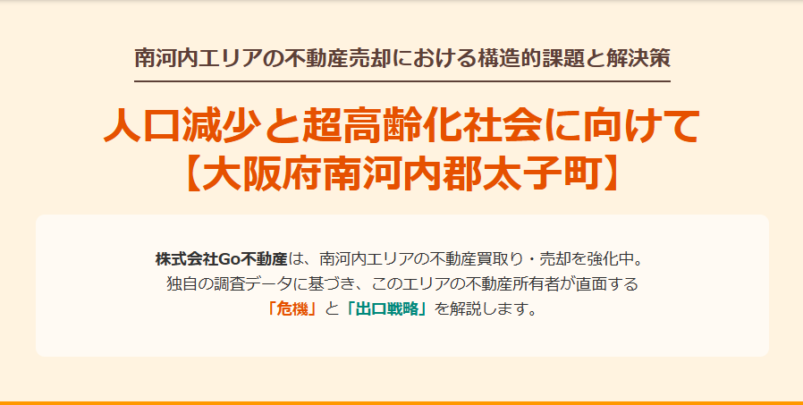 今回は、調査データおよび未来予測データなども踏まえ、太子町を中心としたこのエリアで不動産を所有されている方が直面している「危機」と、その「出口戦略」について解説します。