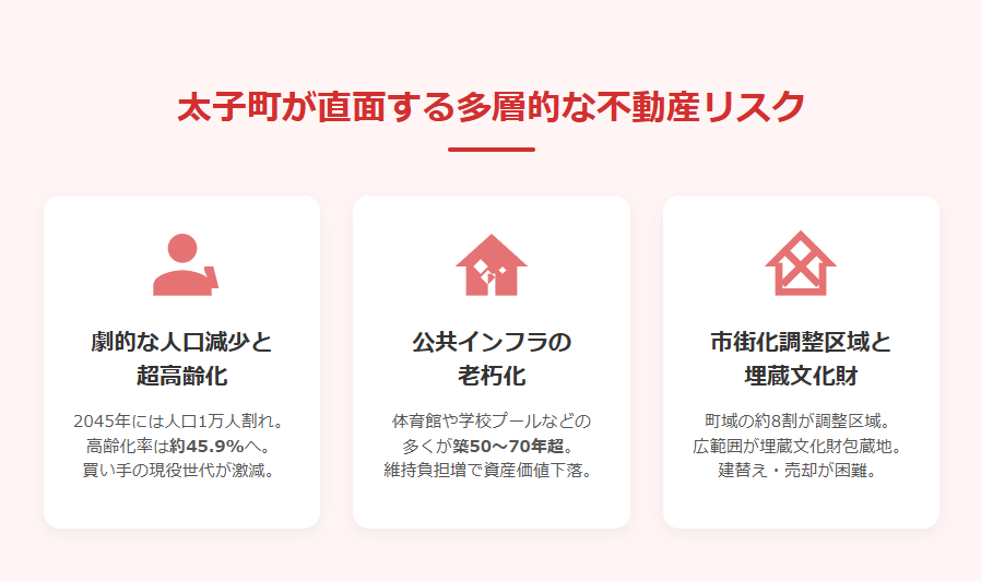 住民サービスの縮小やインフラの老朽化は、住環境としての魅力を低下させ、結果として不動産価格の下落圧力をさらに高める要因となります。