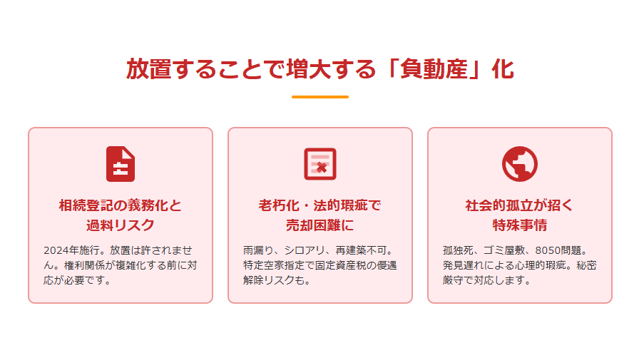 多くの所有者様が「いつか売れるだろう」「子供が住むかもしれない」と考えて不動産を保有し続けています。