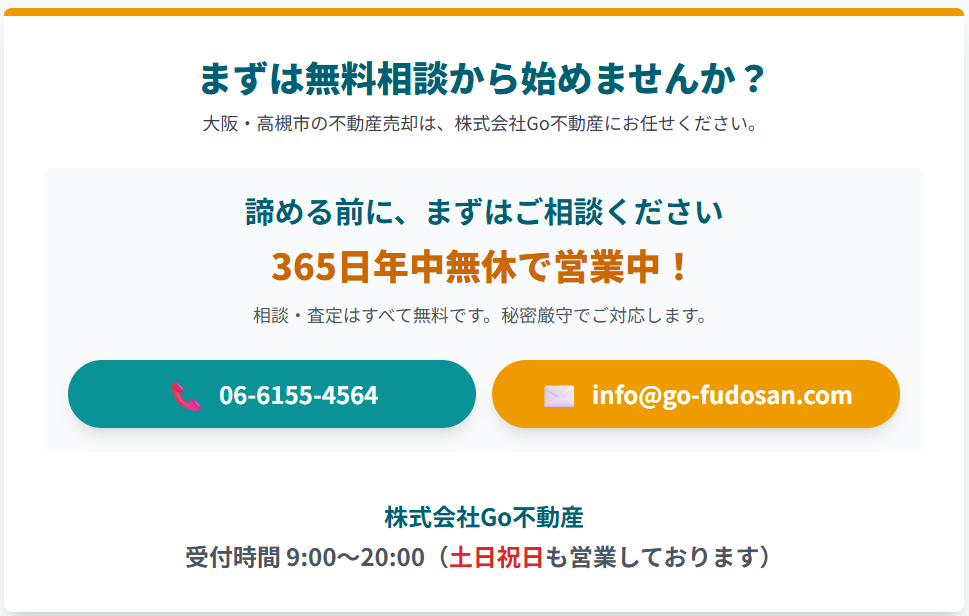 大阪での不動産売却、買取りでお悩みなら、諦めてしまう前に、ぜひ一度当社にご相談ください。