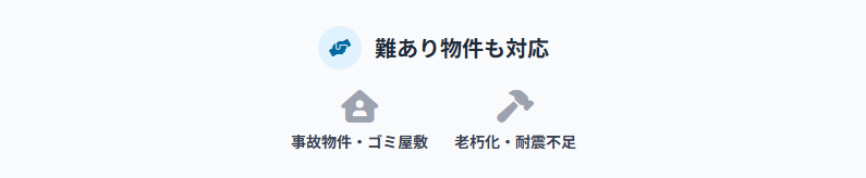 - 物理的な問題を抱える物件:ゴミ屋敷、雨漏り、シロアリ被害、傾きがある物件