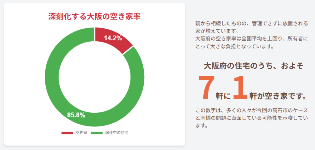 この大阪府高石市の事例は、相続した空き家が抱える典型的な問題をすべて含んでいます。
