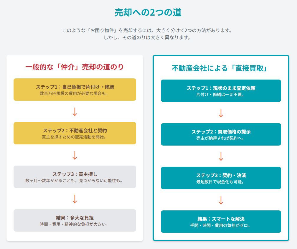 片付けや修繕が一切不要で、売却後の不具合に関する責任(契約不適合責任)も免除される弊社の買取プランは、まさに最適な解決策でした。