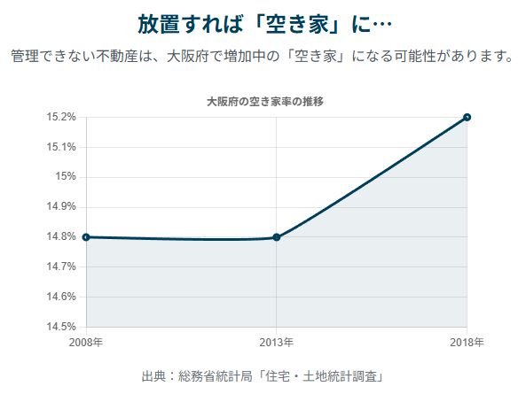 現在、大阪府の空き家率は14.2%(令和5年)と、深刻な社会問題です。