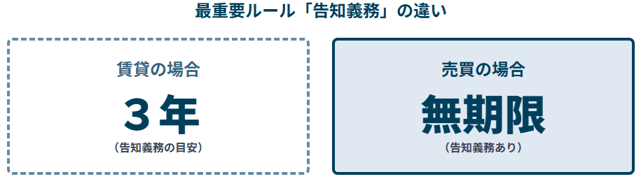 2021年に国土交通省が策定したガイドラインでは、賃貸の場合は事故発生から約3年で告知義務がなくなる場合がある一方、不動産売買においては、告知義務に時間の定めはないと明記されています。