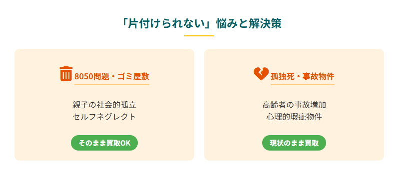 通常の不動産会社では「荷物を撤去してから相談してください」と断られることが一般的ですが、ご家族だけで解決するのは精神的にも体力的にも困難です。