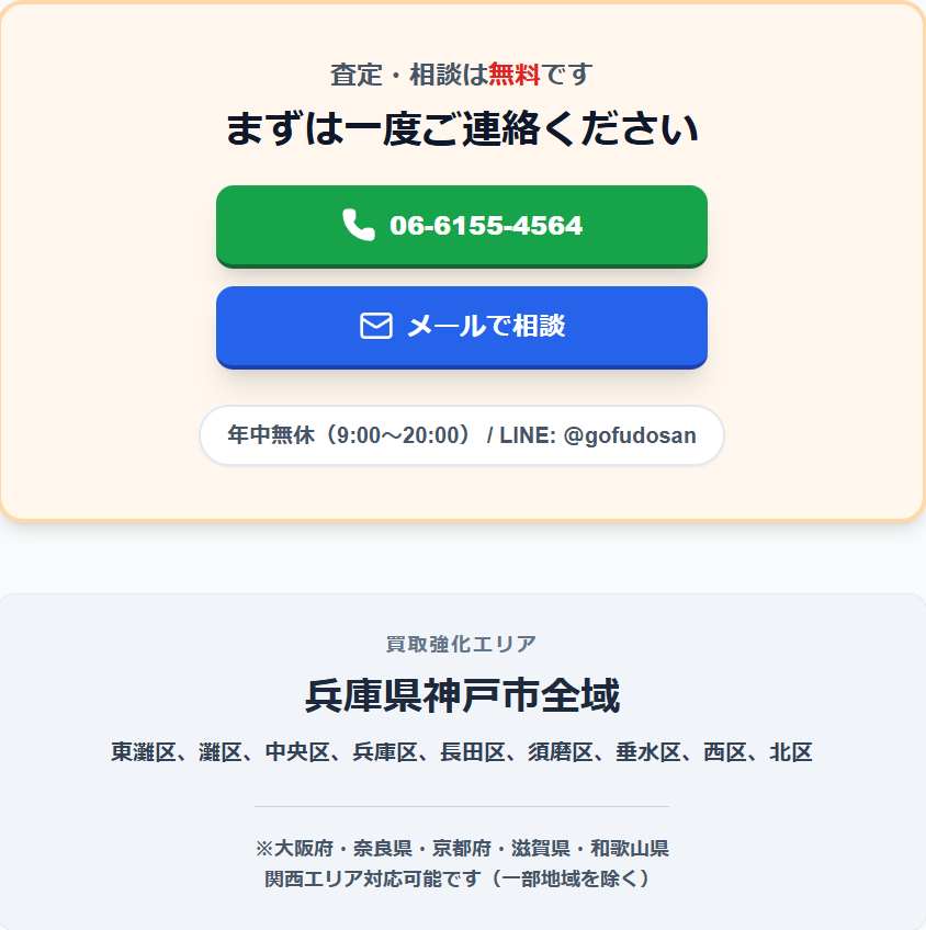 TEL: 06-6155-4564 (受付時間:9:00〜20:00 / 土日祝も営業(365日営業中です)