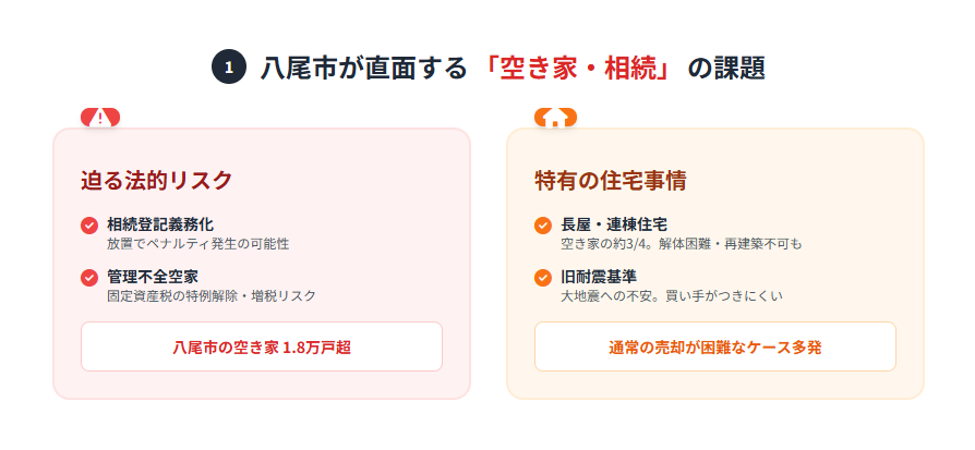 特に八尾市においては、歴史ある街並みが残る一方で、建物の老朽化や相続問題が深刻化しつつあります。