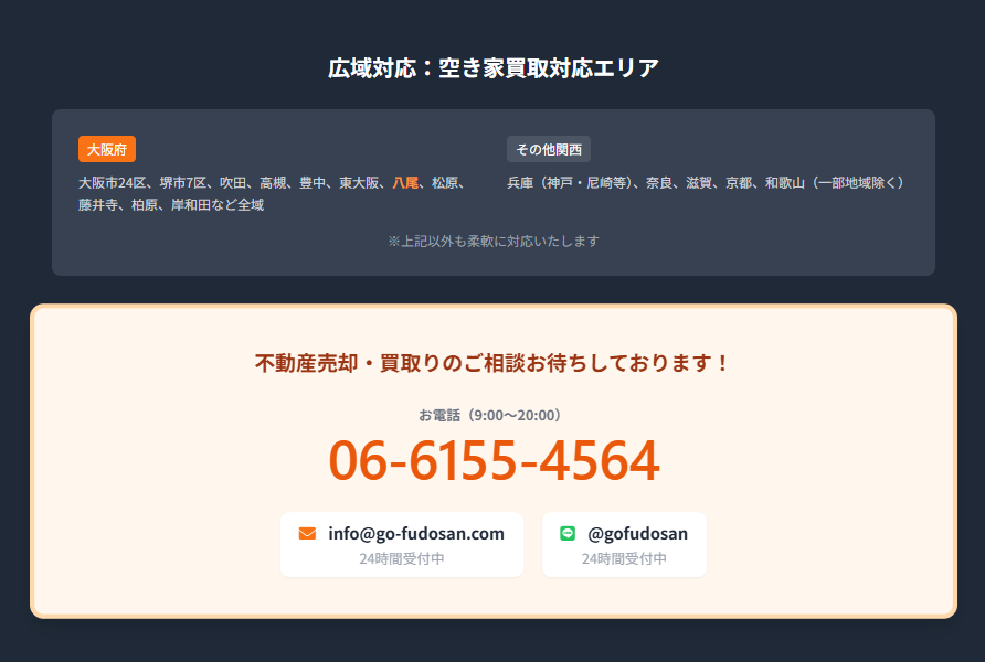 私たちは大阪府全域、特に八尾市や東大阪市を含むエリアで、不動産の「困った」を解決するお手伝いをしています。