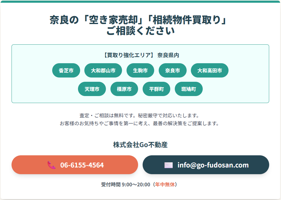 株式会社Go不動産は、関西一円、特に奈良県内の不動産問題に日々向き合っています。