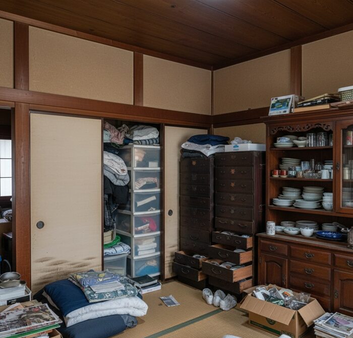 - ゴミ屋敷、荷物や生活用品、不用品が散乱している