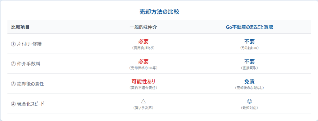 「まるごと買取パック」は、一般的な「仲介」(不動産会社が買い手を探す)とは全く異なります。