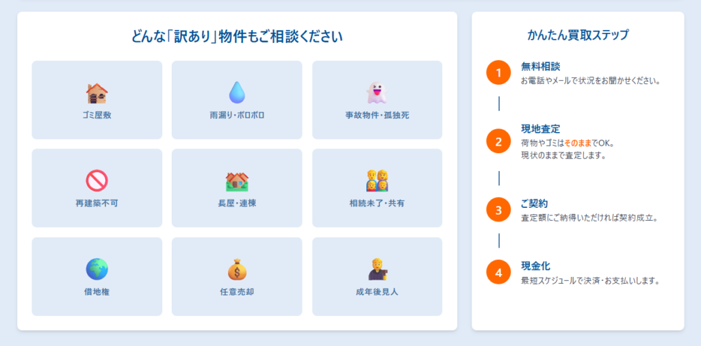 私たち株式会社Go不動産が、お客様から直接、物件を買い取るサービスです。